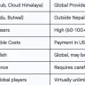 • DataHub: Positions itself as an operator-neutral data center, certified according to the ISO 27001:2013 standard. The company offers a full range of services: from equipment placement (colocation) to public and private clouds (including the “Yeti Cloud” brand), data replication, backup as a service (BaaS) and firewall as a service (FWaaS).16Their key benefits for local businesses include 24/7 local support and the ability to pay in Nepalese Rupees (NPR), eliminating currency risks.17DataHub has a primary site in Kathmandu and a disaster recovery center in Butwal, providing geographic redundancy.16