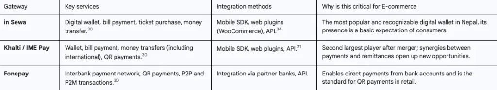 In 2025, a landmark event shook the market: the merger of Khalti and IME Pay, the first ever Nepalese e-wallet.31The main goal of this merger was to create a powerful competitor capable of challenging eSewa’s near-monopoly position, which had a market share of about 80%.31The synergies of this merger are clear: it combines IME Pay’s strengths in remittances (especially from overseas) and its extensive reach in rural areas with Khalti’s established digital payments platform. For e-commerce, this means a new giant has entered the market, and integration with it is becoming critical.