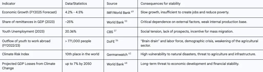 Result: Nepal manages to avoid being completely absorbed by one of the powers, but it pays for it with stagnation. The country remains in a “vulnerability vortex”: political instability slows development, the economy does not create jobs, young people leave, and climate threats grow. External forces continue to interfere in domestic affairs, supporting factions that benefit them. Nepal does not lose the game, but it does not win it either, finding itself in a state of perpetual stalemate – a strategic impasse where the country remains weak, dependent, and extremely vulnerable to any external or internal shocks.