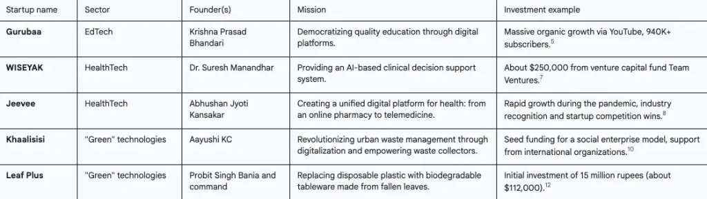 It is in this context – at the intersection of enormous opportunities and colossal difficulties – that the heroes of our study are born. These are the founders of startups who are not just building a business, but solving fundamental problems of Nepalese society in education, healthcare and ecology. Their stories are not only tales of innovation and investment, but also evidence of unbending will, resilience and faith in the future of their country. The table below presents the key players of this new wave of Nepalese entrepreneurship, whose stories we will examine in detail.