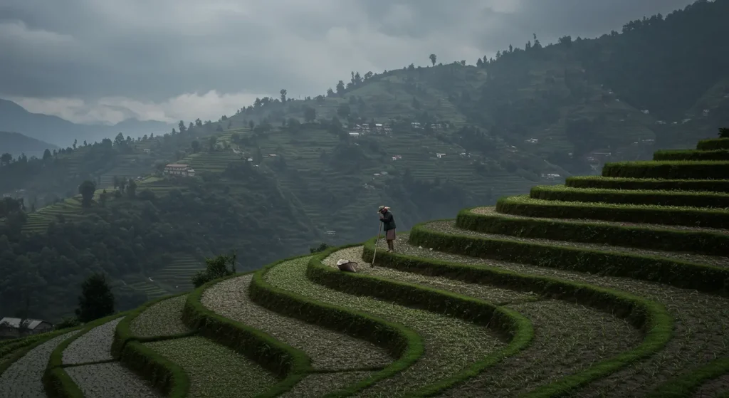 The root of the problem lies in the very structure of Nepal’s agricultural sector. It is dominated by small-scale, mostly subsistence farms that are poorly mechanized and focused primarily on self-consumption.5The average farm plot size is only 0.9 hectares7— an area that is insufficient to achieve economies of scale, implement modern technologies, or generate significant profits. Farmers are forced to resort to labor-intensive terracing of slopes to reclaim every bit of arable land from the mountains, highlighting the acute shortage of resources.5