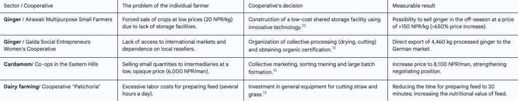 These examples show that the cooperative model is not a theory, but a working tool. The table below summarizes the key benefits that Nepalese farmers gain through cooperatives.
